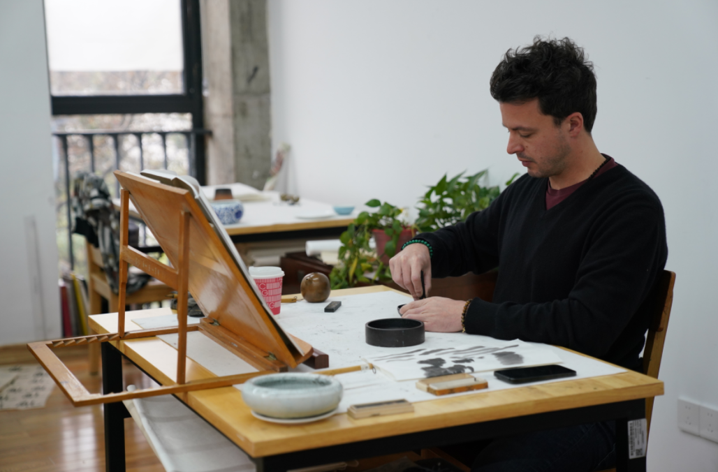喜爱中国书法的来华学习非中国籍人士。