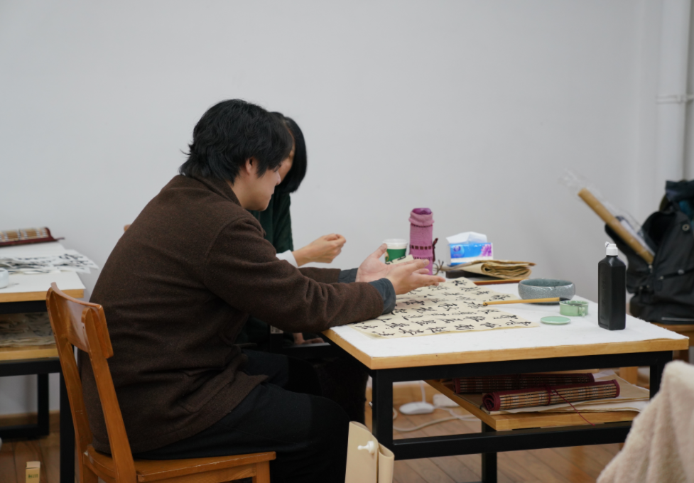 (二)春季学期:核心为楷书、行书、草书的临摹与创作系统教学。楷、行、草由篆隶一脉演化而来,是当代中国人日常书写与应用的主流字体,其笔法体系灵动多变,对笔墨节奏、结体章法的把控也提出更高要求。同时辅以国画进阶山水画研习,并配合真迹展览观摩、书画装裱体验等课外实践,旨在带领学员贯通汉字五体发展的完整脉络,掌握完整书法作品的创作逻辑,深入理解“书画同源”“书为心画”的文化内核。