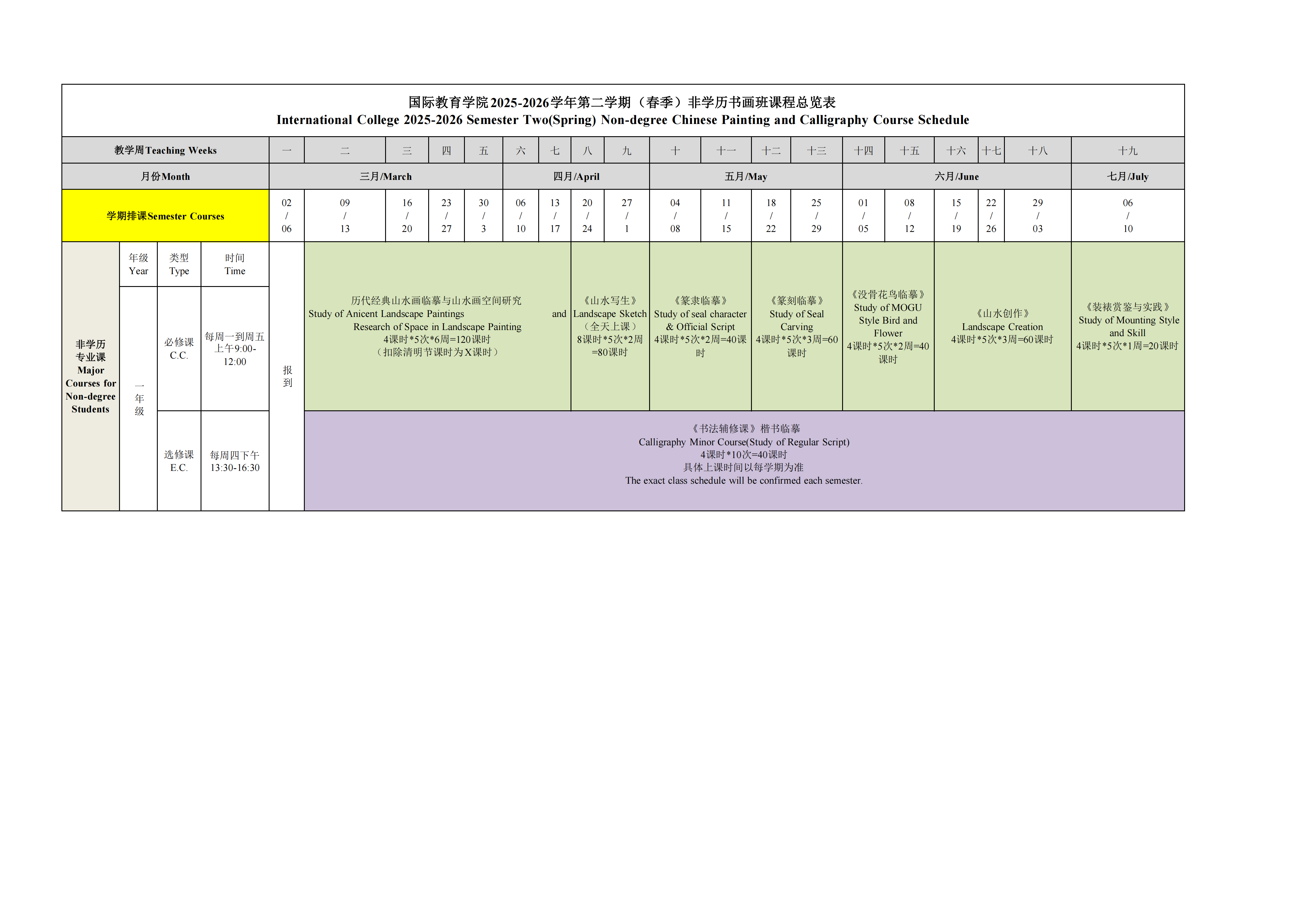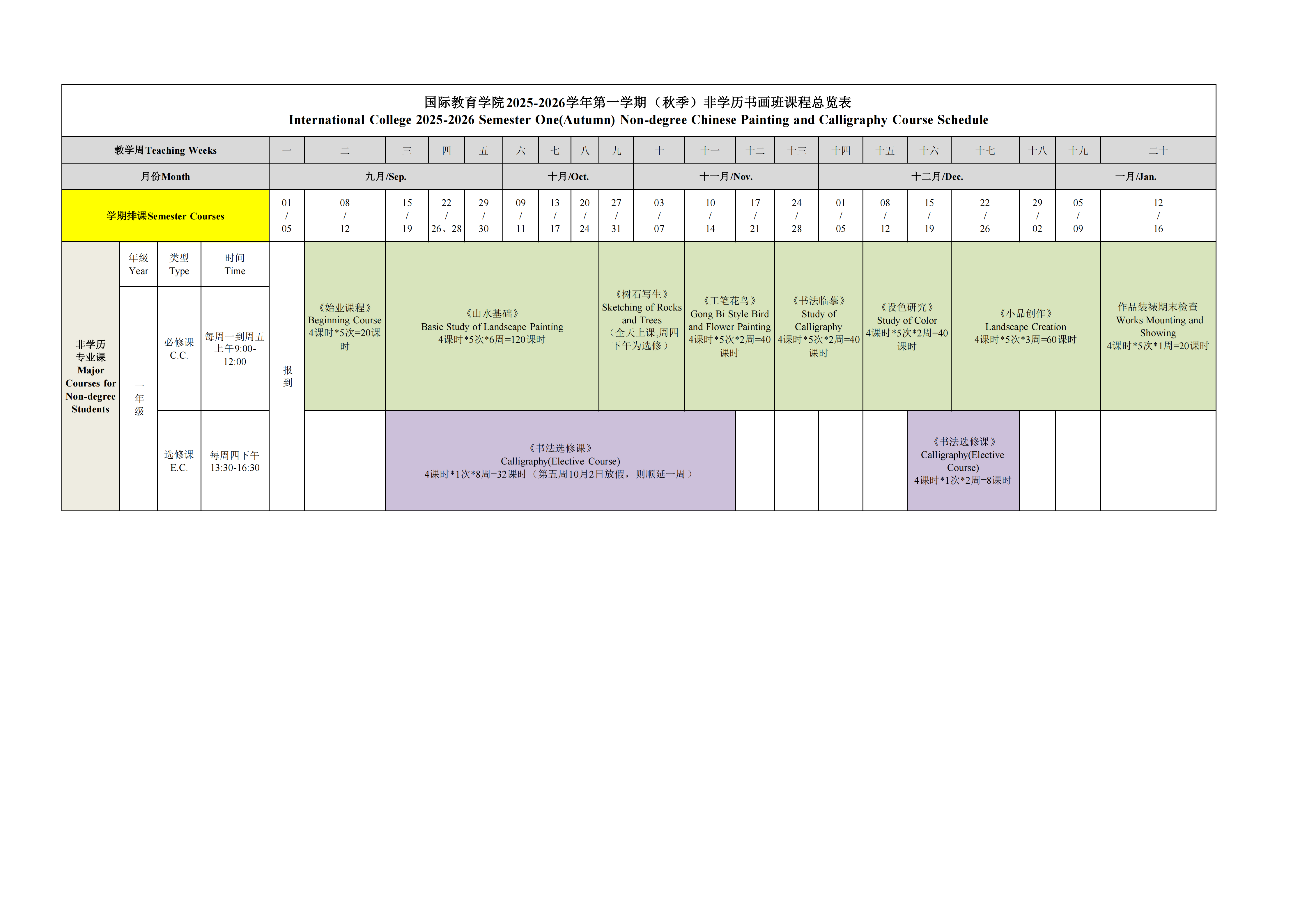 课表仅供参考,国家法定节假日教学调停课安排另行通知。