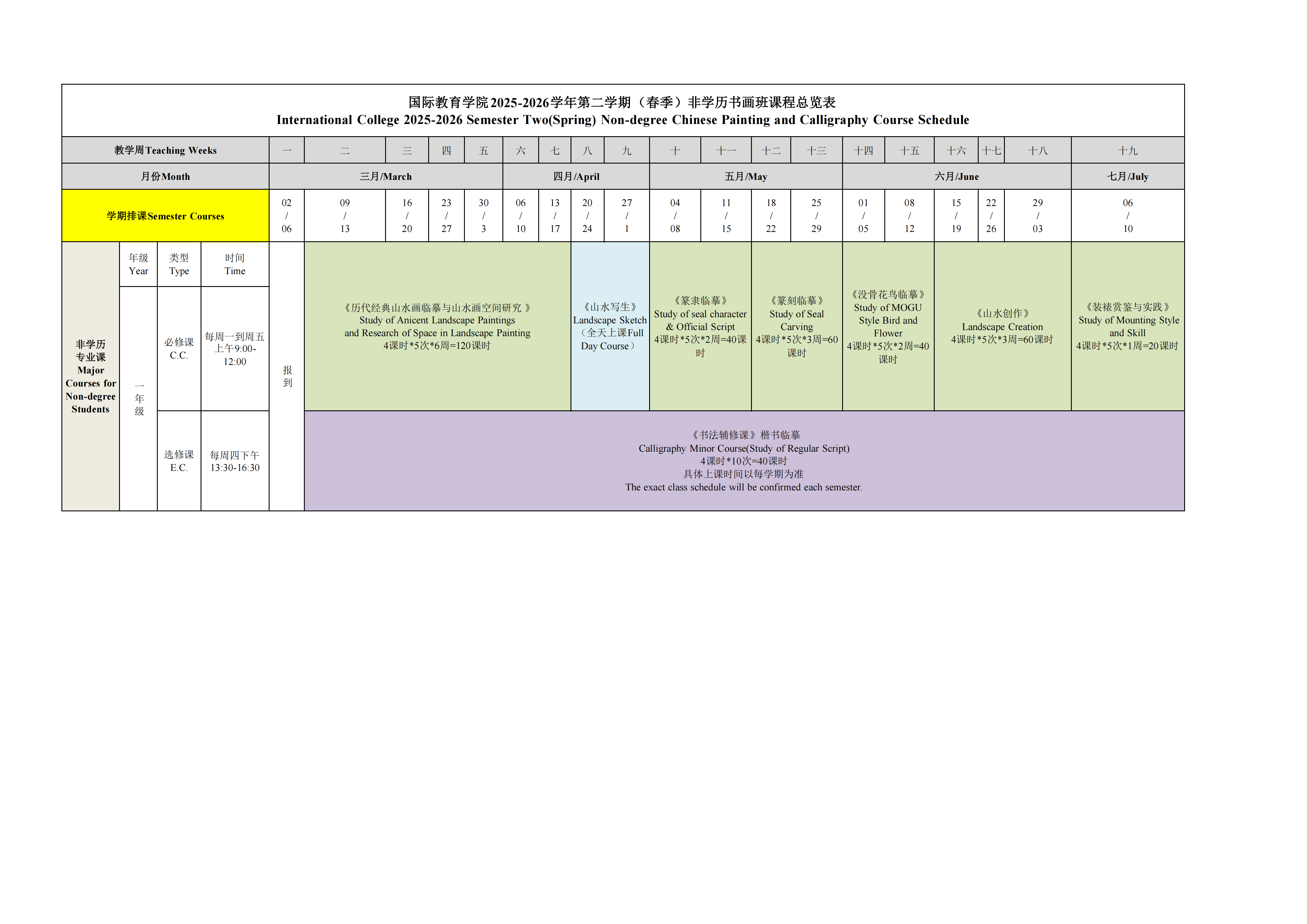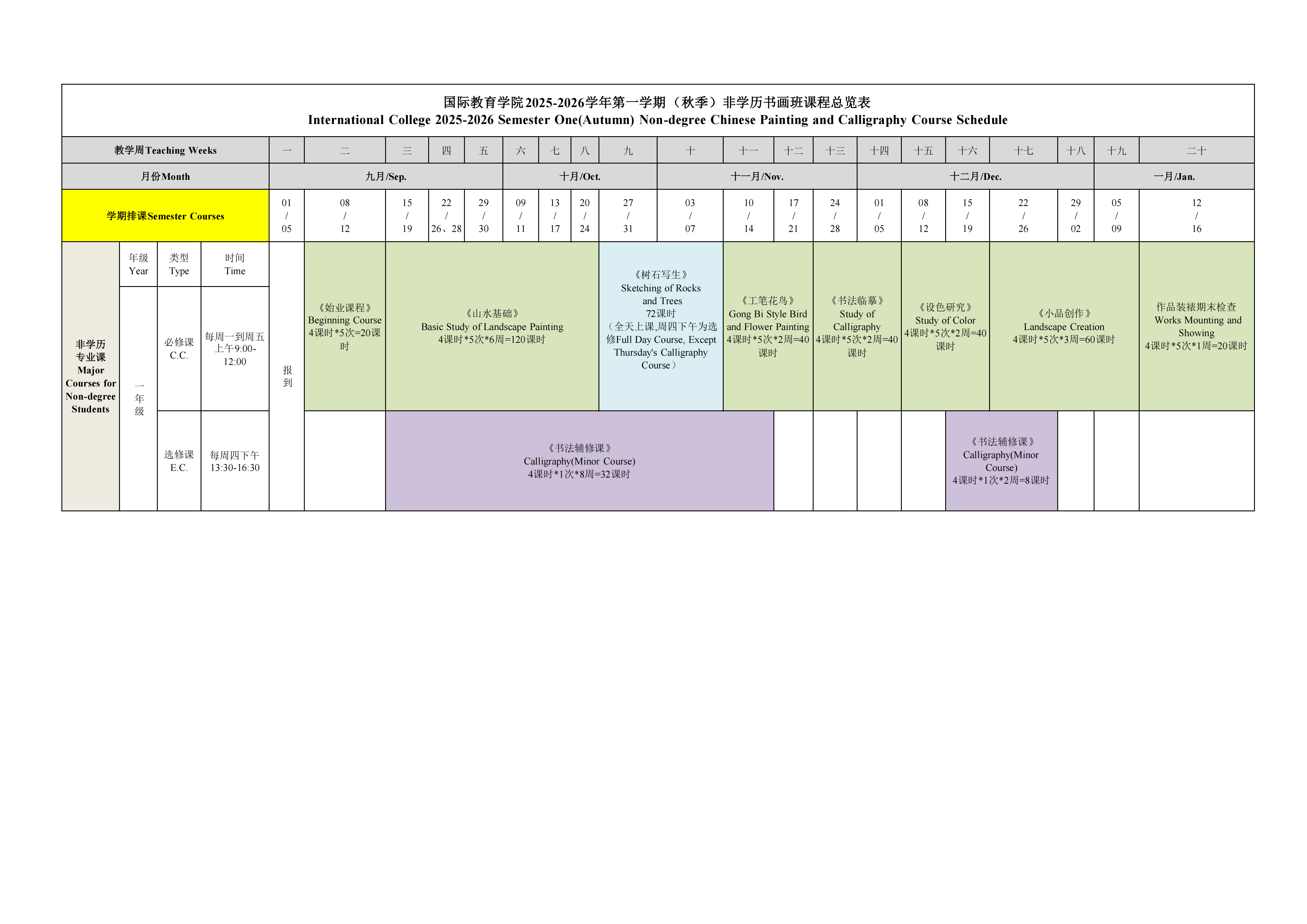 CAA International College 2025-2026 Non-degree Chinese Painting and Calligraphy Course Schedule